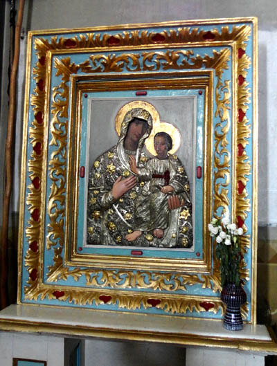 Jedna z nich, stara, ma swoje tajemnice. Jest niezwykła, gdyż dłonie Maryi i rączki oraz i stópki Jezuska nie są namalowane i widoczne, podobnie jak twarze,tak jak w innych ikonach z koszulkami, przez otwory wycięte w srebrnej, bogato zdobionej blasze, lecz wyrzeźbione w drewni. Wystają poza tę okładzinę i organicznie są z nią związane. Czyni to tę ikonę unikalną.
