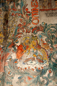 Po jej prawej stronie z wczesnobarokowym obrazem Matki Boskiej z Dzieciątkiem z początku XVII w. i po lewej św. Antoniego z XVIII w. W nawie i prezbiterium uwagę zwracają gotyckie sklepienia, oraz marmurowe epitafia na ścianach bocznych świątyni.Zwłaszcza Wszebora Tymińskiego zmarłego w 1617 roku, Ewy z Trojanowskich Krasińskiej zmarłej w 1760 r. i klasycystyczne Antoniego Mikułowskiego zmarłego w 1794 r. Natomiast w kaplicy Matki Bożej – uprzednio zakrystii – polichromia przedstawiająca wizerunki Maryi z różnych sanktuariów Polski. W ołtarzu zaś kopia obrazu Bartolomea Murilla „niepokalane Poczęcie MB.