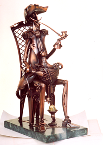 Ma tych rzeźb w dorobku – licząc tylko niepowtarzalne, bo niektóre, odlewane w brązie, wykonuje w kilku egzemplarzach, już kilkaset. I bardzo trudno je kupić, gdyż nabywcy „ustawiają się w kolejce”, mimo iż nie są to dzieła tanie. W Roku Cervantesa wykonał całą serię przeróżnych postaci najbardziej znanego bohatera książki hiszpańskiego pisarza. Wśród nich wysoko cenionego, awangardowego, „lecącego” Don Kichota na koniu.