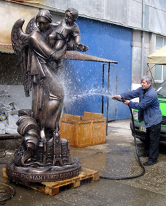 Faktem natomiast konieczność naprawienia pomnika, i to szybko, bo zbliżały się doroczne Dni Kijowa, chyba najważniejsze wydarzenie w mieście. A jesienią mają odbyć się wybory municypalne… Remont pomnika zlecono, podobno za niemałe pieniądze, jednej z ukraińskich firm. Pracami kierował wnuk autora monumentu, też artysta rzeźbiarz, Wasilij Borodaj.