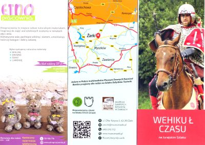 Władze miasta i gminy, a także obiekty i firmy zainteresowane przyjmowaniem i obsługą turystów, finansują przeznaczone dla nich publikacje. M.in. kartonową teczkę o tytule „Żarki – Twoje miejsce na Jurze. PRZYGODA, ZABAWA, EDUKACJA” z planem gminy i opisami jej turystycznych atrakcji, a także włożonymi folderami reklamujących się w ten sposób obiektów: Wehikuł Czasu, Etno pracownia, Winnica Rajska. Jest, wydany w dużym formacie A3 dwustronna mapa gminy oraz miasta ze spisem atrakcji turystycznych. A także obszerny i ładnie wydany „Katalog wycieczek Jurajska Gmina Żarki 2024” z bogatą ofertą i cenami. Jest więc w czym wybierać. I warto tu przyjechać chociażby na jeden dzień.