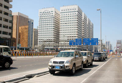 Z nim centralną wyspę łączą trzy mosty: Mustafach, Magla i Sheikh Zayed. Ten ostatni, przerzucony nad kanałem Maqta, jest jednym z najciekawszych dzieł architektury w tej dziedzinie w świecie. Gdy patrzy się nań z boku, ma kształt fal morskich, lub jak widzą to inni, pofałdowanych pustynnych wydm.