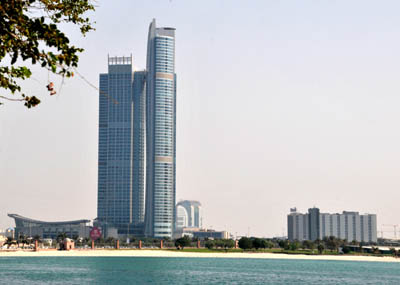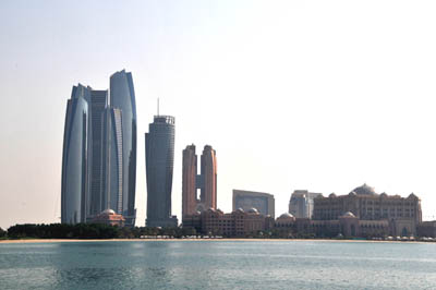 I vis a vis jednej z głównych atrakcji miasta, zespołu hotelowego Emirates Palace. Gdy byłem tu poprzednio, trwała jeszcze budowa i okładanie szklanymi ścianami tych kilkudziesięciopiętrowych, ładnych wieżowców. Hotel ten mieści się w byłym pałacu emira.